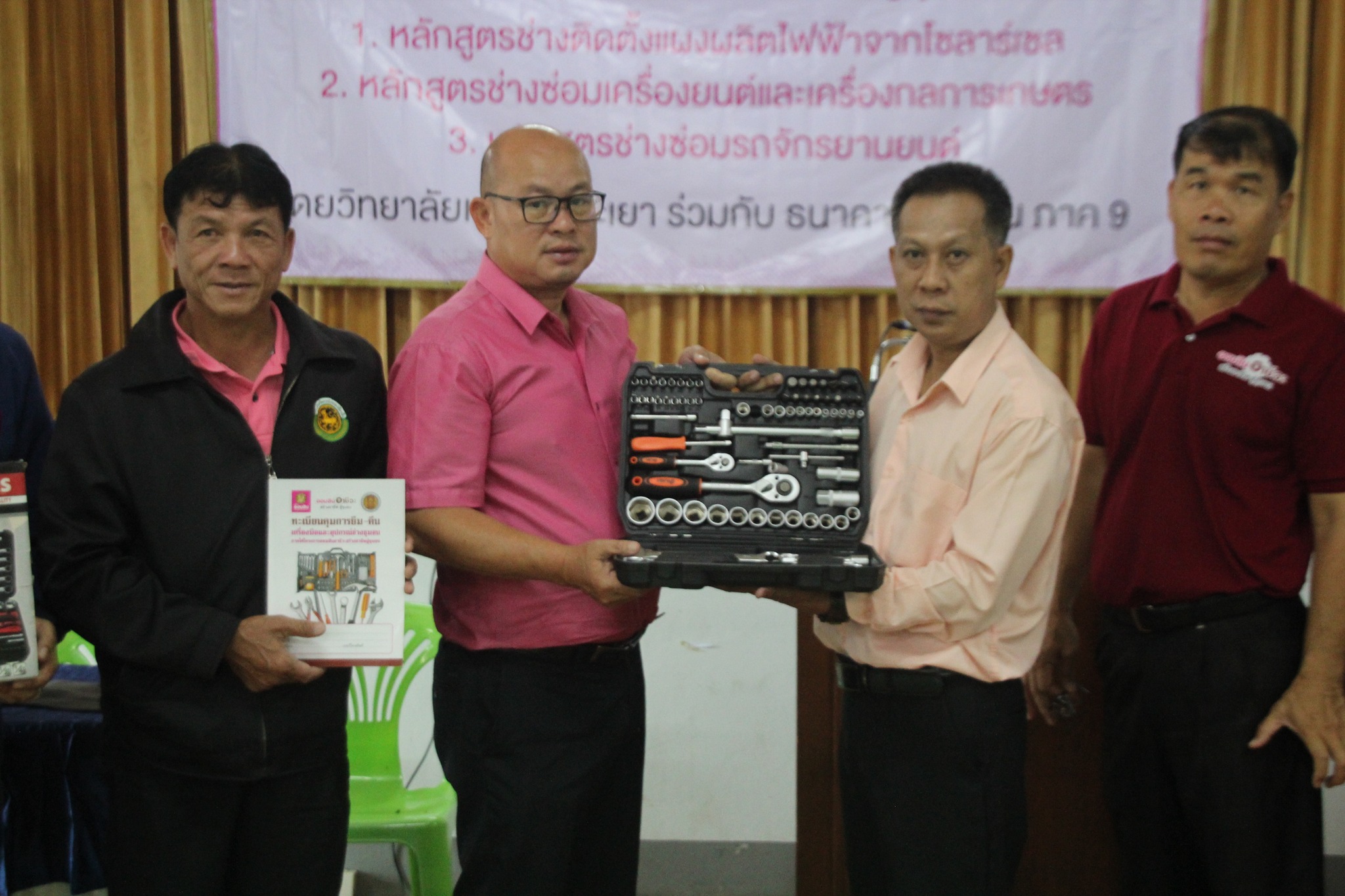 15 กรกฎาคม 2568 นายกเชษฐ์ กิ่งชนะ รองผู้อำนวยการ รักษาการในตำแหน่ง ผู้อำนวยการวิทยาลัยเทคนิคพะเยา เป็นประธานพิธีเปิดโครงการออมสินอาชีวะสร้างอาชีพสู่ชุมชน ปี 2568 หลักสูตร “ซ่อมเครื่องยนต์และเครื่องกลการเกษตร” ณ เทศบาลตำบลแม่ปืม อ.เมืองพะเยา จ.พะเยา ได้รับเกียรติ จาก นายเอกวิทย์ เอี้ยงการ นายกเทศมนตรีเทศบาลตำบลแม่ปืม กล่าวต้อนรับทีมวิทยากร และผู้เข้ารับการอบรม หลักสูตรซ่อมเครื่องยนต์
